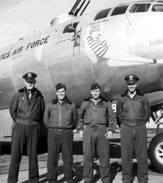 L to R: Charlie Mahar- Radar, Arthur D. Reitz-Navigator, Capt. Torres-pilot, Earl H. Ambrose, Aircraft Commander